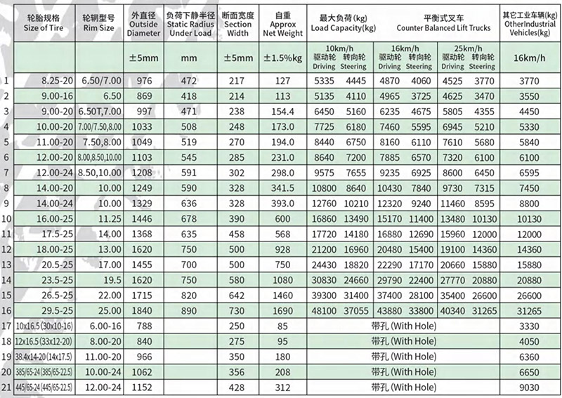 叉車(chē)專(zhuān)用輪胎合理的鼓內(nèi)及結(jié)構(gòu)設(shè)計(jì),保證安裝及與輪輞緊密配合,加寬的輪胎斷面,提高運(yùn)行穩(wěn)定性。