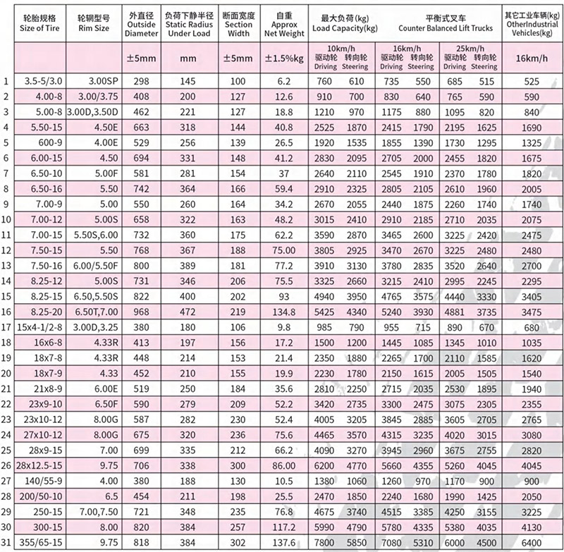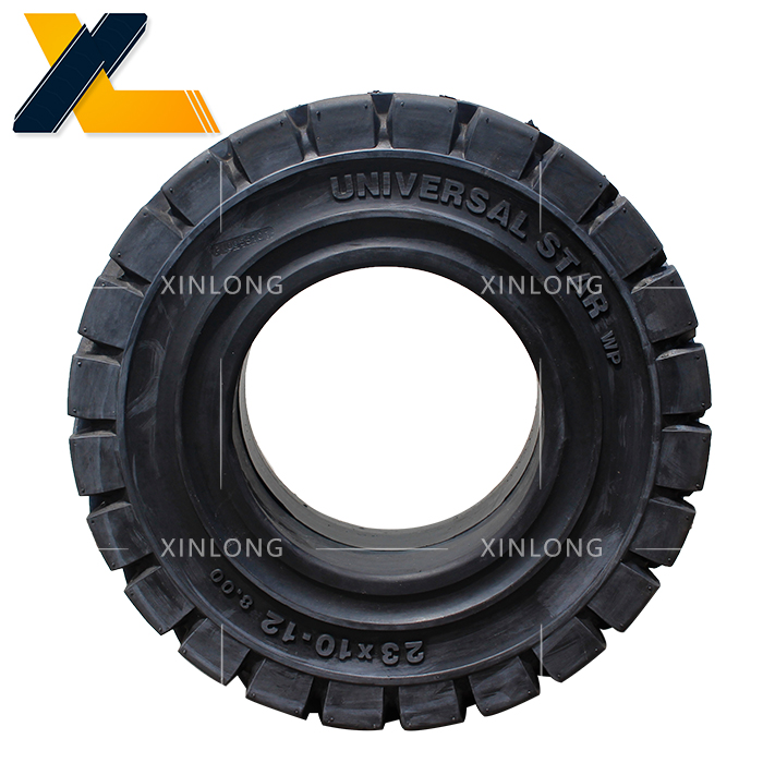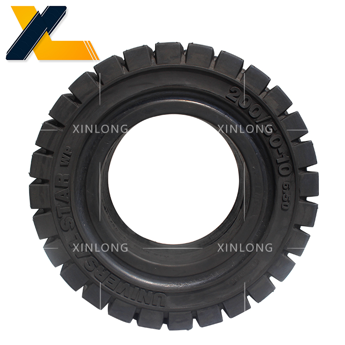 叉車實心輪胎采用國家標準輪輞,可與充氣輪胎互換。與充氣胎相比,具有耐磨、使用壽命長、滾動阻力小、能耗低、耐刺破、安全性好等特點,有更高的性能價格比,在低速、高負荷運行車輛領域,是充氣胎的換代產品。與同類產品相比,其獨特的三層膠料及胎側反弧結構設計,有效吸收震動能量,體現人性化設計。堅韌的基部膠,鋼環加強,有效杜絕滑圈現象。