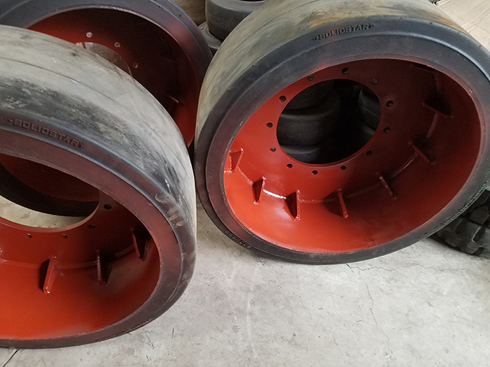 專門為工業(yè)車輛設計,適用于平整路邊,具有重心低,能耗低,耐刺破,經(jīng)濟適用等特點。采用注射線生產(chǎn)橡膠體密度高,耐磨性與穩(wěn)定性場,與鋼圈結(jié)合緊密,避免膠體與鋼圈剝離現(xiàn)象,抓地性強,剎車性能優(yōu)良,負載行駛穩(wěn)定性強,適用于拖車及其他傳動,行走機械。實心輪胎使用壽命長、變形率低、減低了車輛的維修費用以及增加了駕駛員的舒適性。優(yōu)良的安全使用性能,有利于提高工作效率因?qū)嵭妮喬ヌンw為全橡膠構(gòu)成,大限度地保證了輪胎的耐刺穿性,從根本上消除了工業(yè)車輛在承載運行過程中及在惡劣的作業(yè)環(huán)境中的輪胎刺穿隱患。實心輪胎的負荷-形變量小、運行穩(wěn)定性好,因其耐刺耐撕,無需充氣,避免了頻繁補胎換胎的繁重勞動,可提高車輛的使用率和工作效率,在低速、高效運行車輛中,實心輪胎完全可以替代充氣輪胎。